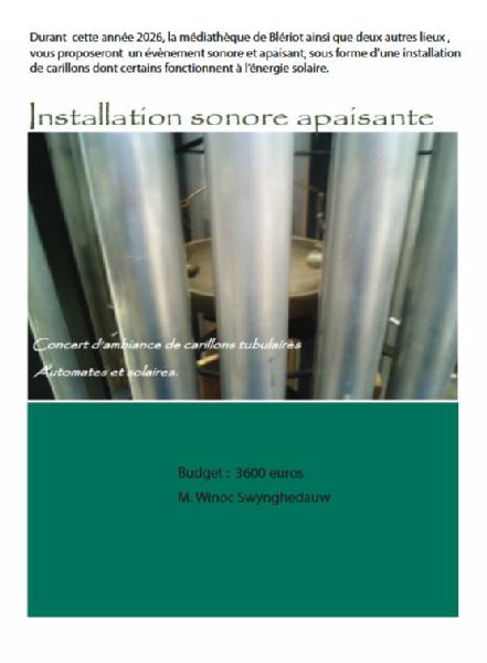 ZoomInstallation sonore et relaxante - Montant 3 600 € - Projet déposé par Winoc SWYNGHEDAUW